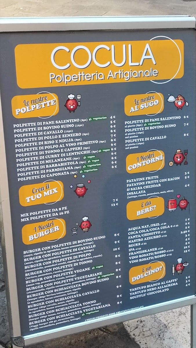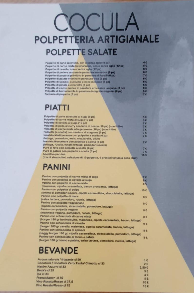 Welcome to Cocula - Polpetteria Artigianale, a culinary gem nestled in the heart of Lecce. This charming eatery specializes in artisanal polpette, offering a delightful variety that promises to tantalize your taste buds. Customers rave about the exquisite flavors, particularly the Polpo al primitivo and the savory polpette al sugo di cavallo.
